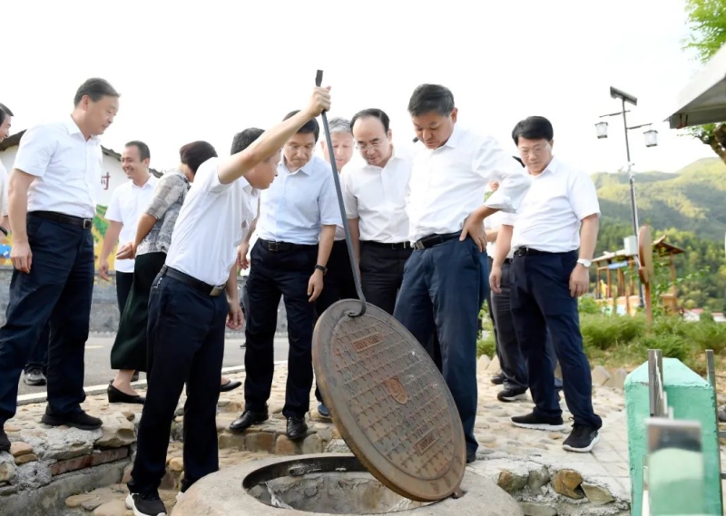 平坦宽敞的柏油路在阳光下熠熠闪亮,白墙黛瓦的民房在山间错落有致,这里是崇义县过埠镇铁木村田螺湾。黄润秋来到这里,察看美丽乡村建设情况。他指出,良好的生态环境是美丽乡村的基本要素,要按照先规划后建设的原则,建设好生态宜居的美丽乡村。编制村庄规划要通盘考虑产业发展、居民点布局、人居环境整治、生态保护和历史文化传承,让广大农民在乡村振兴中有更多获得感、幸福感。黄润秋十分关心农村生活污水处理情况,详细询问污水产生量及污水处理设施运维情况,并打开污水井盖察看进水情况。他强调,治理农村生活污水是实施乡村振兴战略的重要任务,要根据农村区位条件、污水处理规模和排放去向等,选择好符合当地实际的处理方式,因地制宜推进农村生活污水处理。