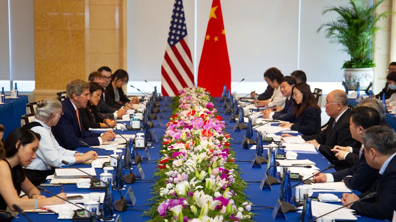2023年7月17日,中国气候变化事务特使解振华在京与美国总统气候问题特使约翰·克里开始中美气候变化会谈。